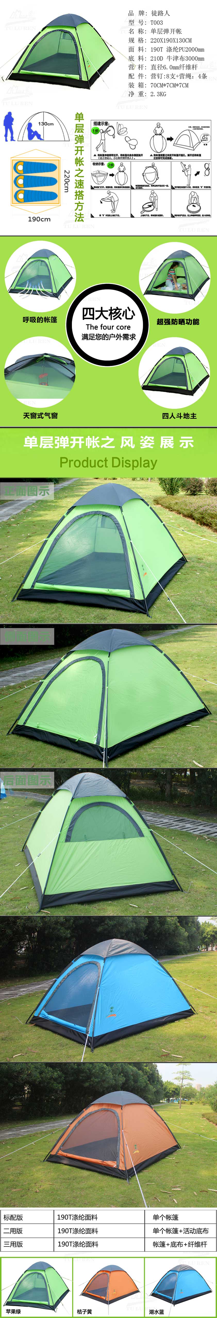4.吊燈式設計:內(nèi)帳頂扣能掛營燈或其他用品。