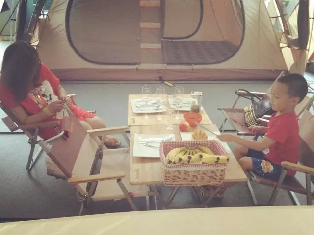▲一對母子已經(jīng)開始享受露營生活了~
