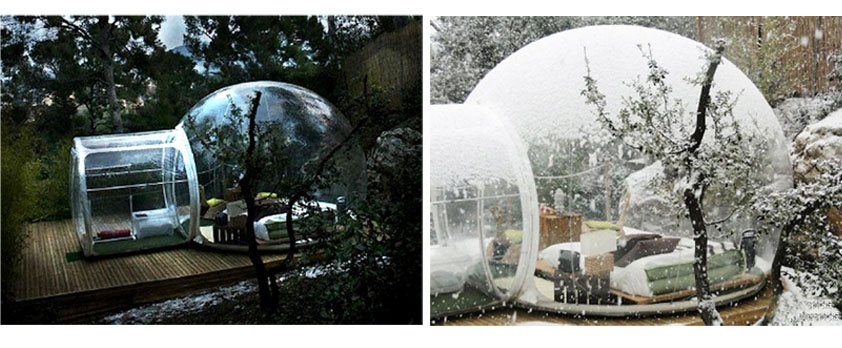 法國(guó)設(shè)計(jì)師 Pierre-Stéphane Dumas 設(shè)計(jì)了一款透明氣泡帳篷,因?yàn)樗鼘?shí)現(xiàn)了能量的自給自足,這款帳篷可以放在花園、郊外、山間……任何你喜歡的地方。想想兩個(gè)人在里面「起看雪看星星看月亮,從詩(shī)詞歌賦談到人生哲學(xué)」是多么浪漫的一件事情,這才是真正的「以天為被,地為床」吧。