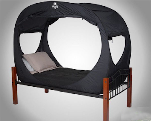 如果你苦于沒(méi)有一個(gè)屬于自己的私人空間,「privacy pop」帳篷無(wú)疑會(huì)滿足你的要求,讓你即使是在合用的臥室中也能享受到奢侈的私人空間。其兩側(cè)的拉鏈窗為使用者提供必要的光線和空氣流通。這個(gè)可拆卸的帳篷可以容納兩張雙人床或兩張雙人大床,同時(shí)它還可以折疊起來(lái)便于運(yùn)輸和攜帶,此設(shè)計(jì)有點(diǎn)類(lèi)似我們夏天用的“蚊帳”,只是使用材料不同而已,私密性更好。另外方便攜帶。